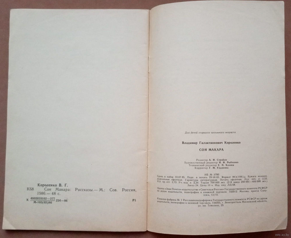 "Сон Макара" - Владимир Короленко. Изд-во "Советская Россия". 1986г.