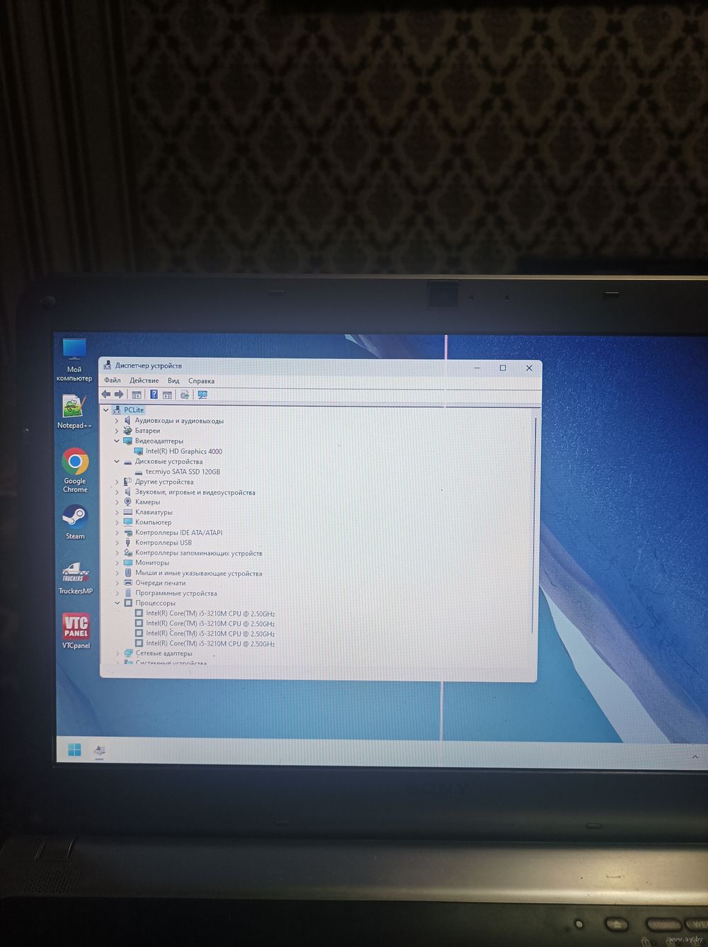 Модель: sve14ae12v Дефекты: Полоса один см. по средине. Видеокарта одна Intel hd 4000. Процессор: i5- 3210m, ssd 120, оперативная память 4 гб.