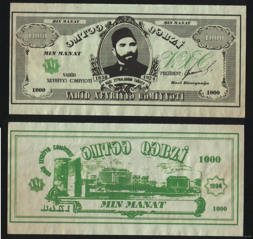 Состаренная копия Непризнаная республика АЗЕРБАЙДЖАН 1000 манат 1994 n123 ТОРГ/ВАША ЦЕНА