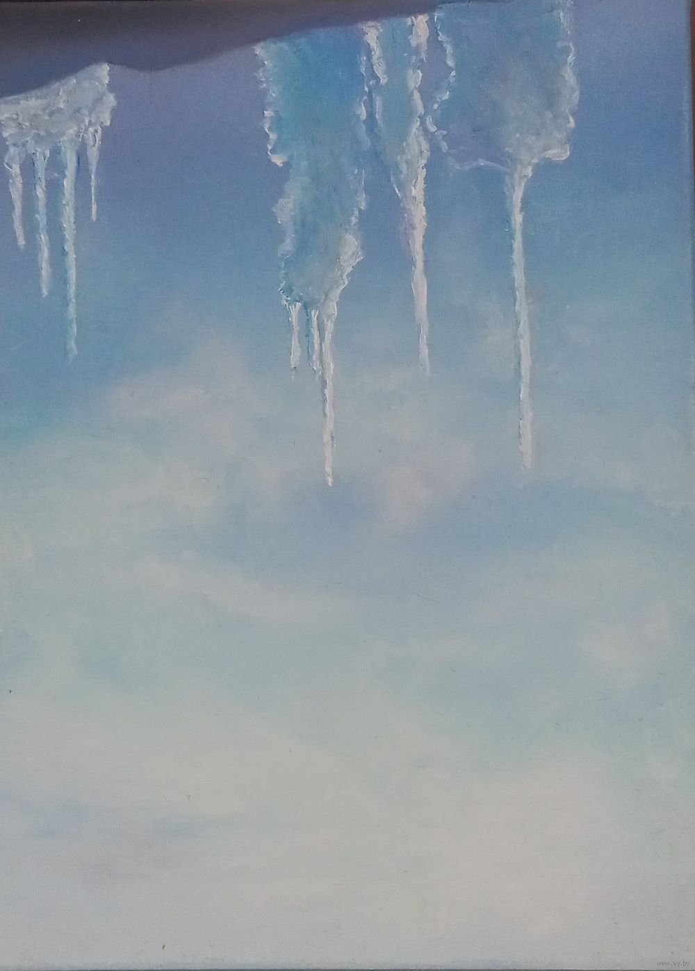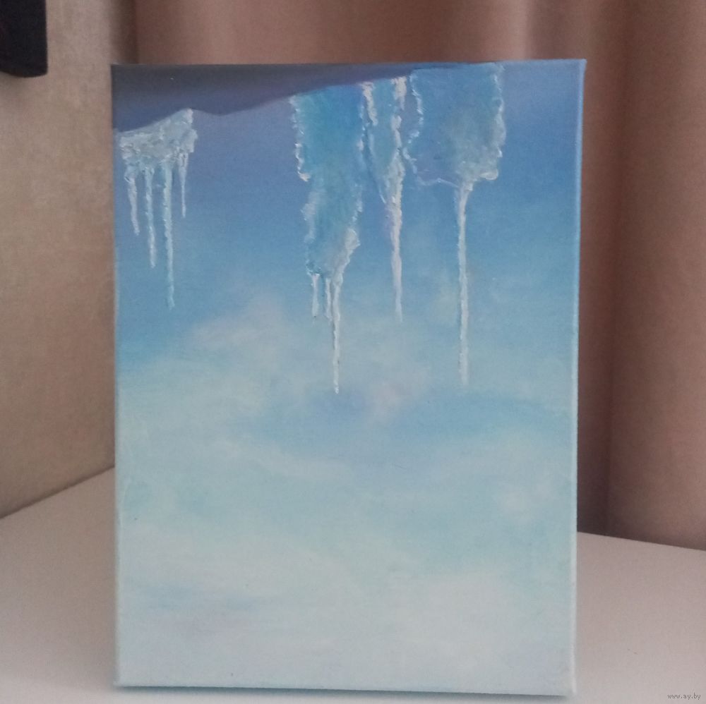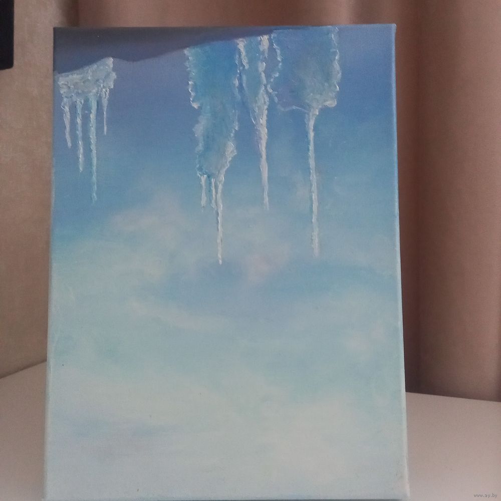 Картина Сосульки/масло/лак/холст на подрамнике/18×24/мастихин/кисть/Демеш Т.М.