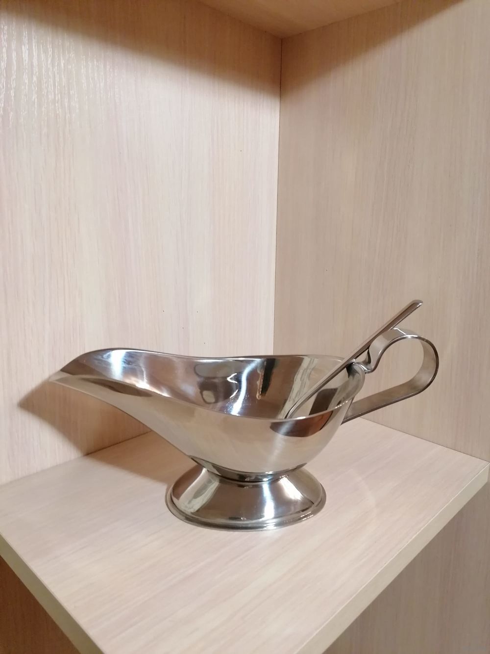 Соусник производства Италия выполнен из нержавеющей стали. Объем 240 мл. Идет в комплекте с ложкой.