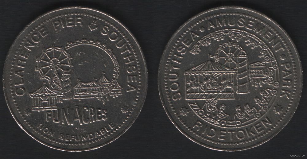 Southsea Amusement Park - Ridetoken -- Clarence Pier Southsea. Funacres. Non Refundable (на 1 поездку) (31мм)бел. (f1