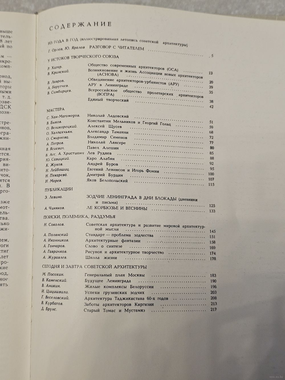 Содержание: Сборник освещал актуальные вопросы градостроительства, теории и практики советского зодчества того периода