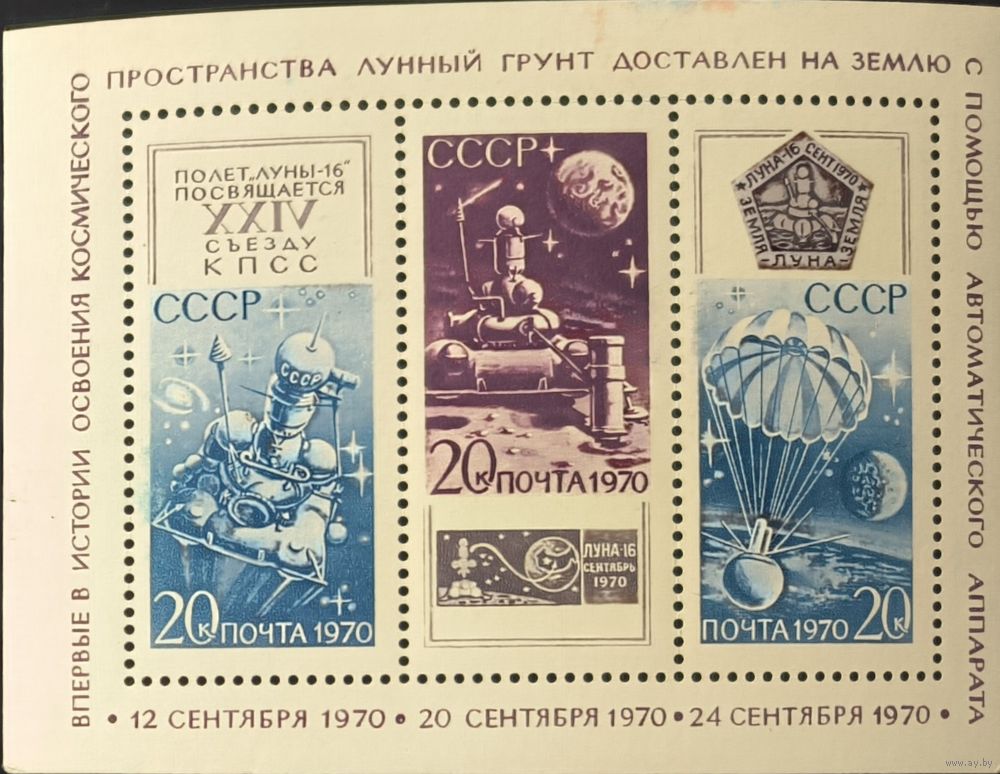 СССР. 1970г. Советская автоматическая станция "Луна 16". Почтовый блок (Заг бл № 69).