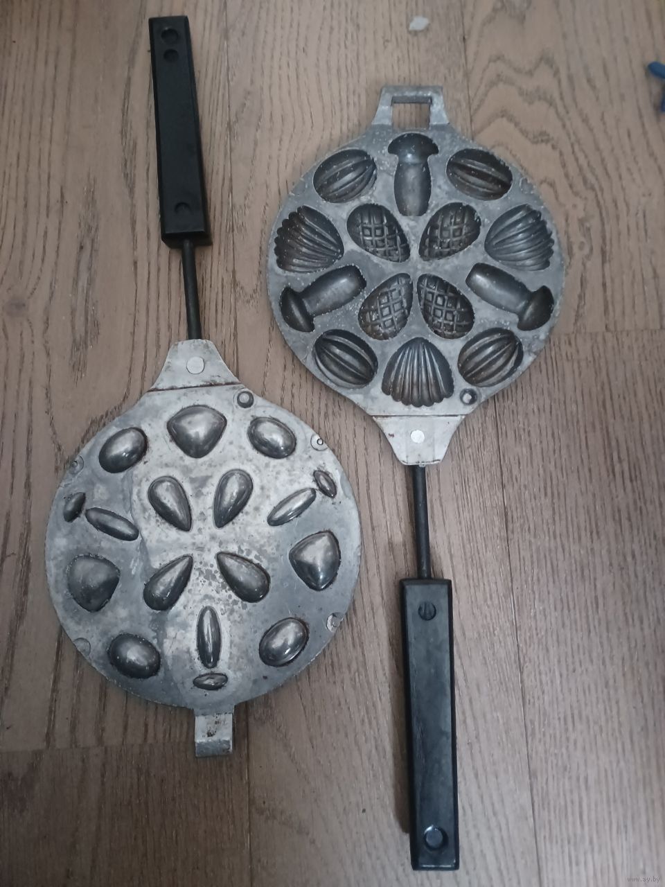 Советская форма для выпечки / приготовления печенья. Ассорти: орехи, орешки, грибы, грибочки, ракушки, шишки. В хорошем состоянии. Ручки заводские с бакелитовыми ухватами. Тяжелая. С клеймом.