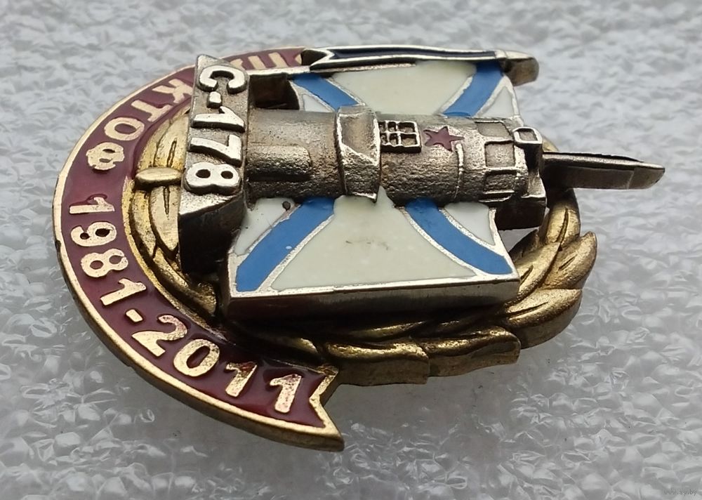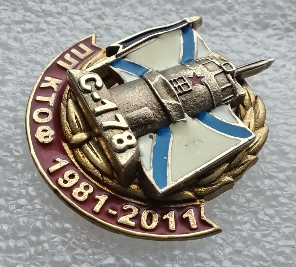 Советская подводная лодка С-178. ПЛ КТОФ 1981-2011. (Тяжелый металл. Винт.) Редкий знак.