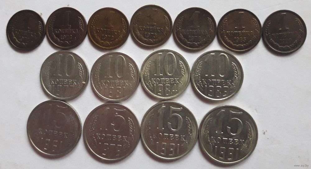 Советские монеты СССР (после реформы - 15 шт.). UNC-aUNC
