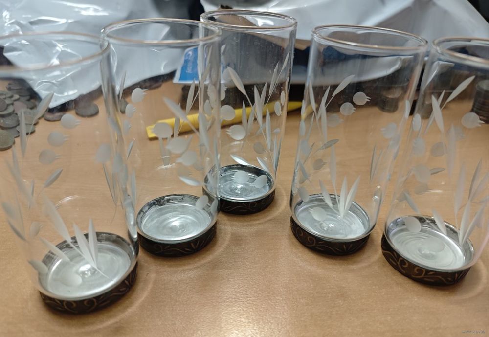 Советские рюмки/стаканы. Хрусталь с мельхиоровым основанием. 10см. Очень легкие