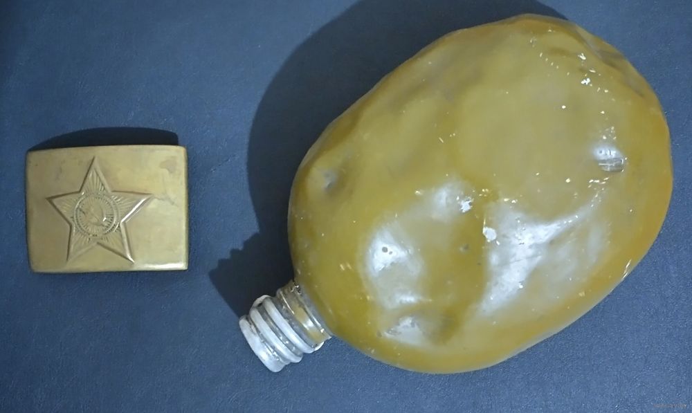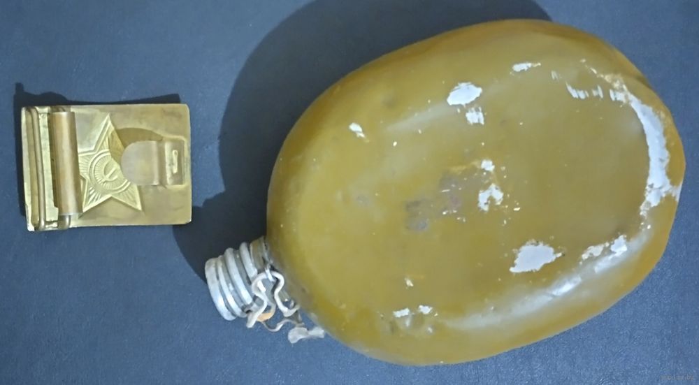 Советские солдатские: пряжка бляха на ремень и фляга без крышки. Цена за всё.