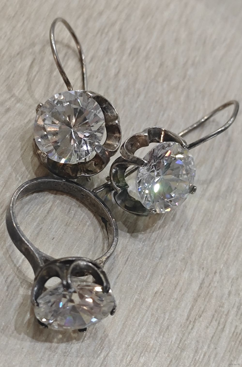Советский, бижутерный гарнитур с хрусталем.
