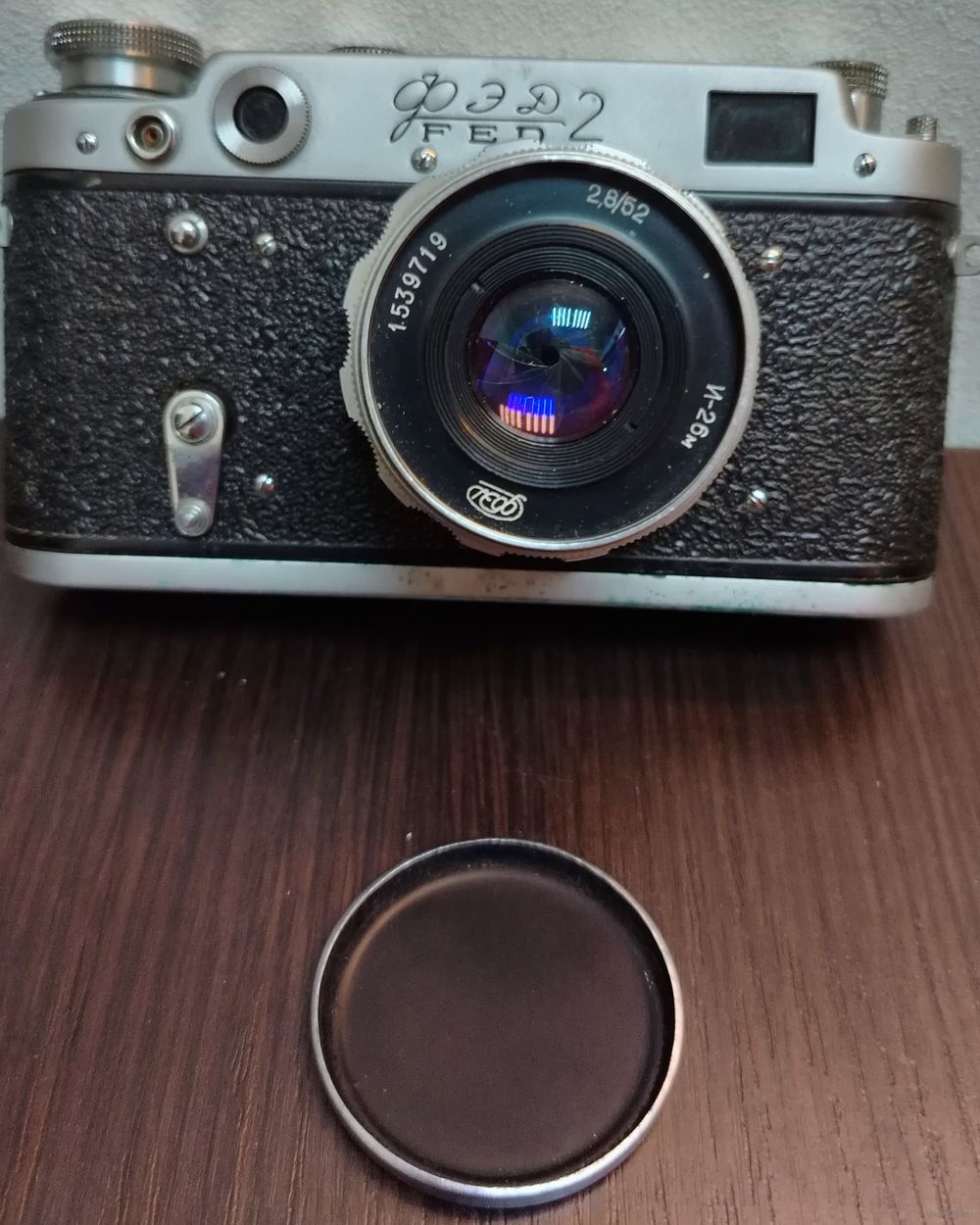 Советский дальномерный фотоаппарат ФЭД-2 с объективом Индустар-26м (И-26м) с фокусным расстоянием 52мм и максимальной диафрагмой f/2.8. в родном чехле из кожи .