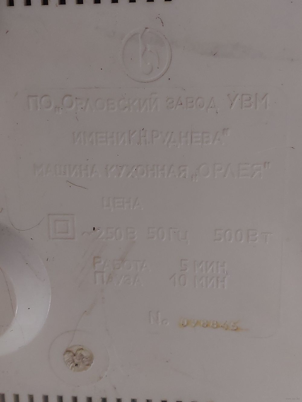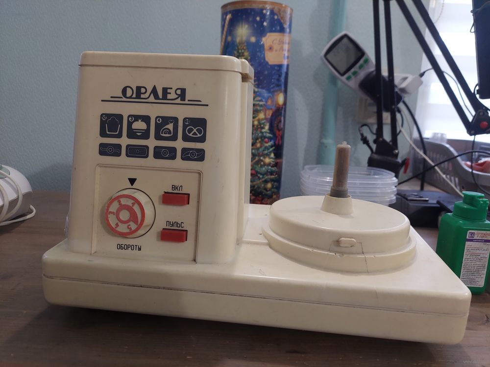 Советский кухонный комбайн Орлея, 500 Вт, в рабочем состоянии, есть только основание. На фото пример разобранной машинки из интернета.