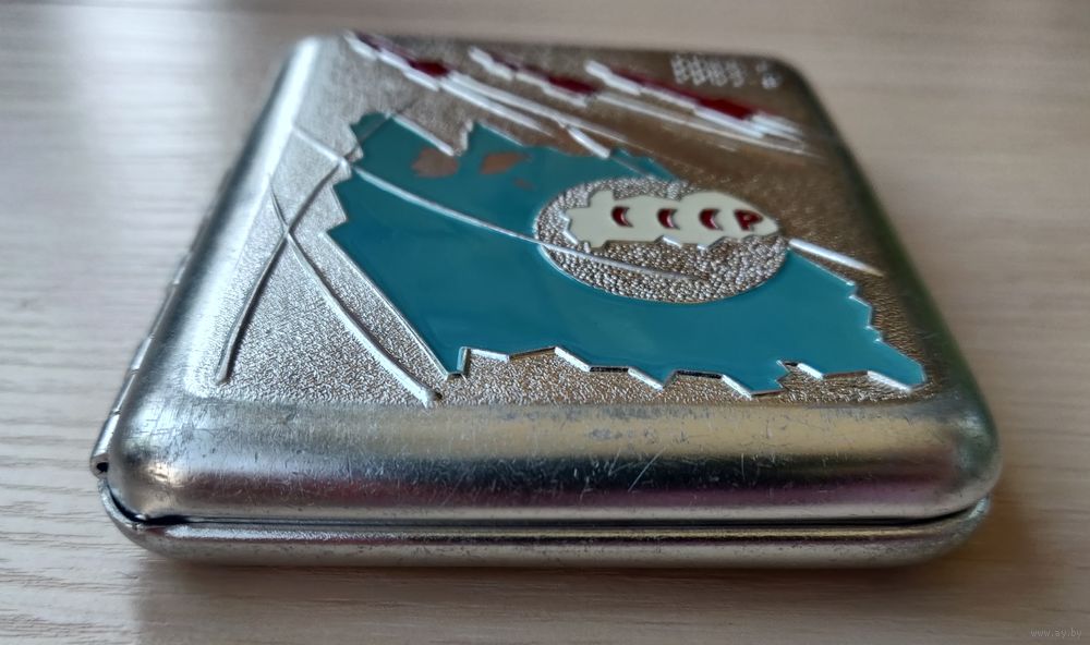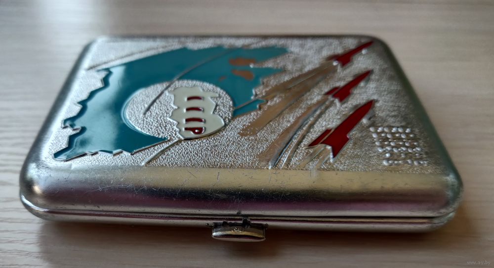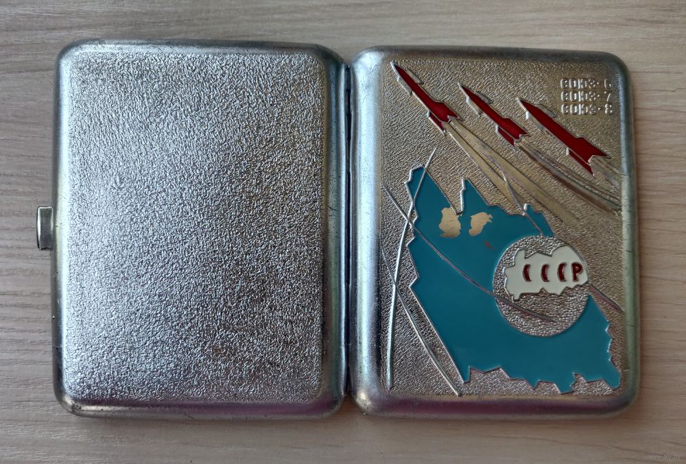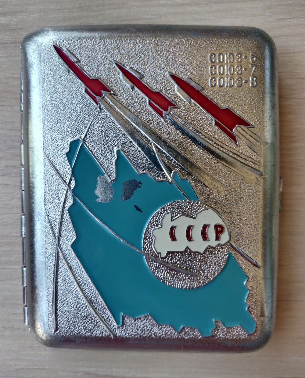 Винтажный, Советский коллекционный портсигар в эмалях "Союз-6, 7, 8" – советские космические спутники 1960-х годов.