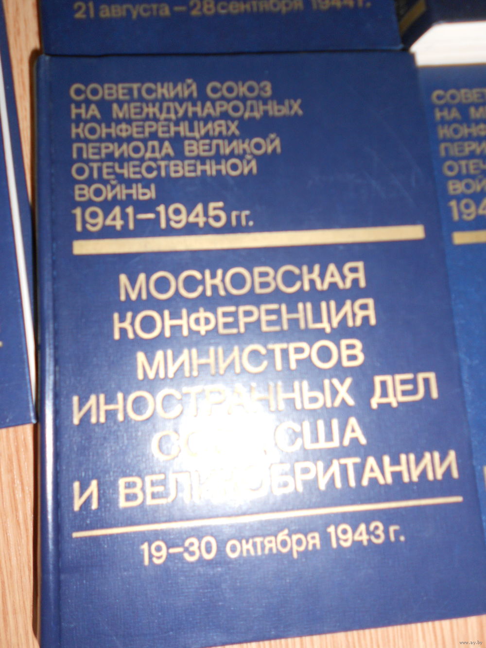 Том 1:Московская конференция министров иностранных дел СССР,США и Великобритании(19-30 октября 1943 г.).Том 2:Тегеранская конференция руководителей трех союзных держав-СССР,США и Великобритании(28 ноября-1 декабря 1943 г.).Том 3:Конференция представителей СССР,США и Великобритании в Думбартон-Оксе(21 августа-28 сентября 1944г.)Том 4:Крымская конференция руководителей трех союзных держав-СССР,США и Великобритании(4-11 февраля 1945 г.)Том 5:Конференция Объединенных наций в Сан-Франциско(25 апреля-26 июня 1945г)Том 6:Берлинская(Потсдамская)конференция руководителей трех союзных держав-СССР,США и Великобритании(17 июля-2 августа).