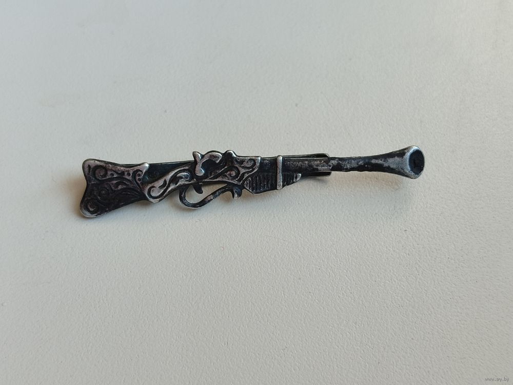Советский винтажный зажим для галстука, заколка,в виде ружья