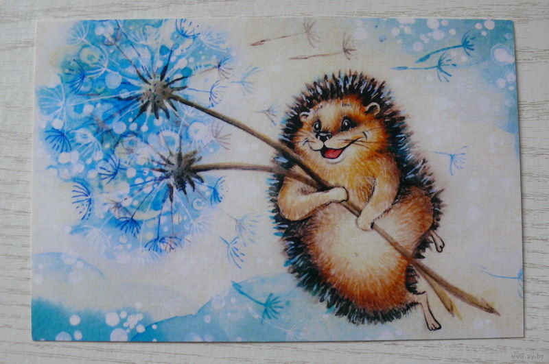 Современная открытка; Нефёдова Ирина, Ёжик с одуванчиком; чистая.
