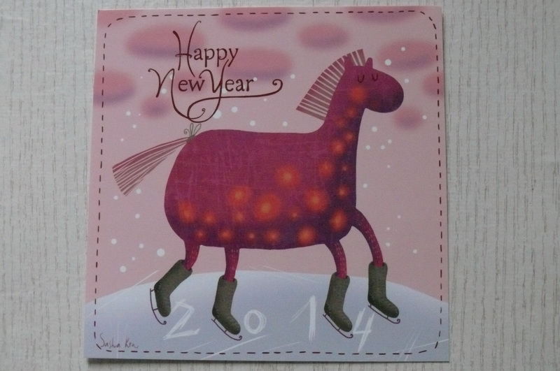 Современная открытка, Саша Кру, С Новым 2014 годом! 2013 (13,5*13,5см, год Лошади 12 лет назад :)