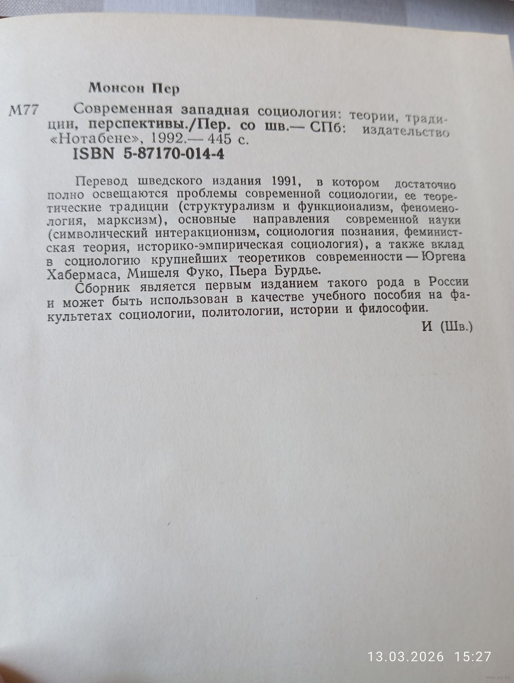 Современная западная социология. Пер Монсон. Нотабене 1992. В хорошем состоянии, тв переплет. 445 с. Тираж 5000. Возможность отправки Белпочтой, полная предоплата