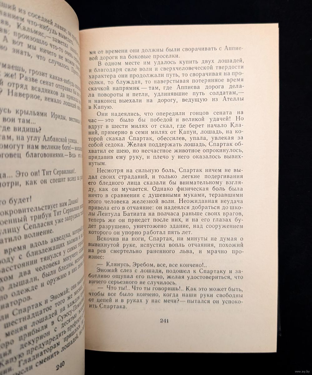 В романе Рафаэлло Джованьоли рассказывается о самом крупном в истории восстании рабов в Древнем Риме под предводительством Спартака. Роман возвеличивает образ античного революционера, восставшего против угнетателей.