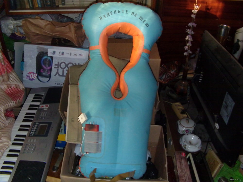 Не использованный. Баллон заряжен. Воздух держит хорошо 2-3 суток +.. Состояние жилета и сумки на фото. Лампочка не горит ( старый аккумулятор).