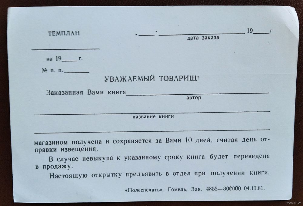 Специальная почтовая карточка "Заказ книг" Могилев. 1981 г.