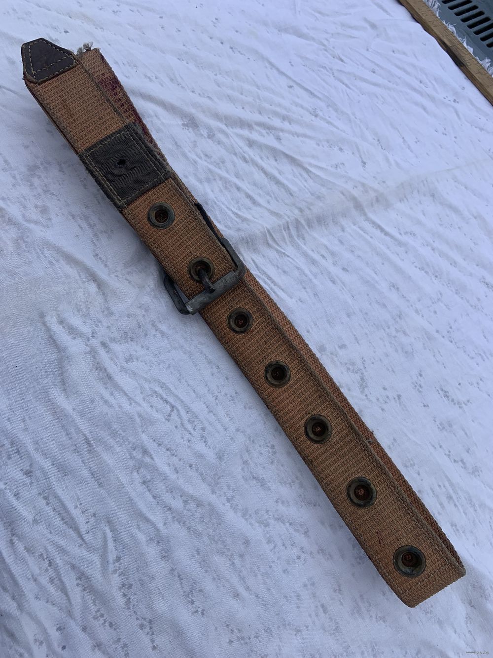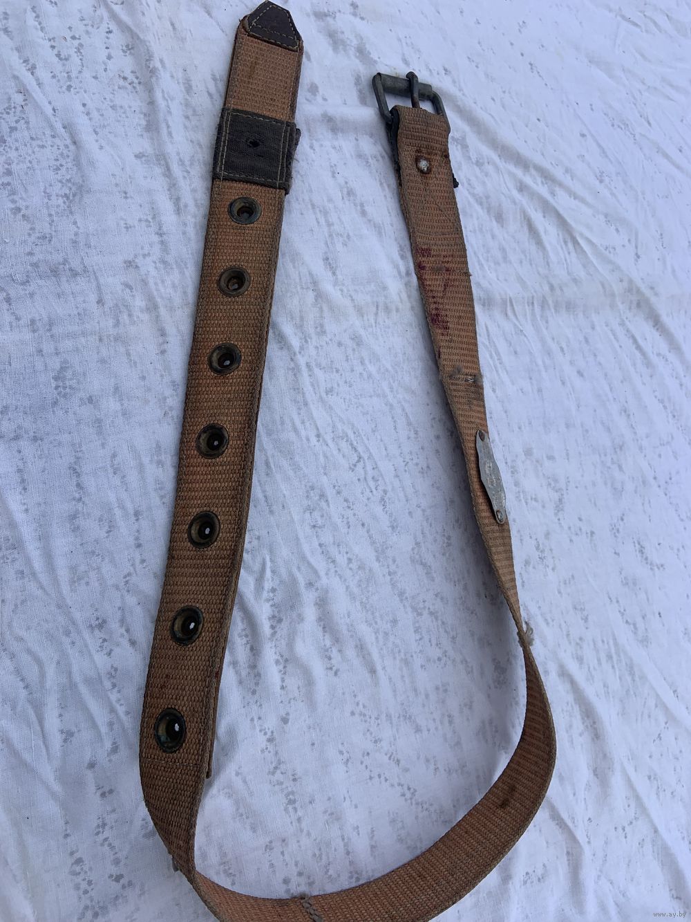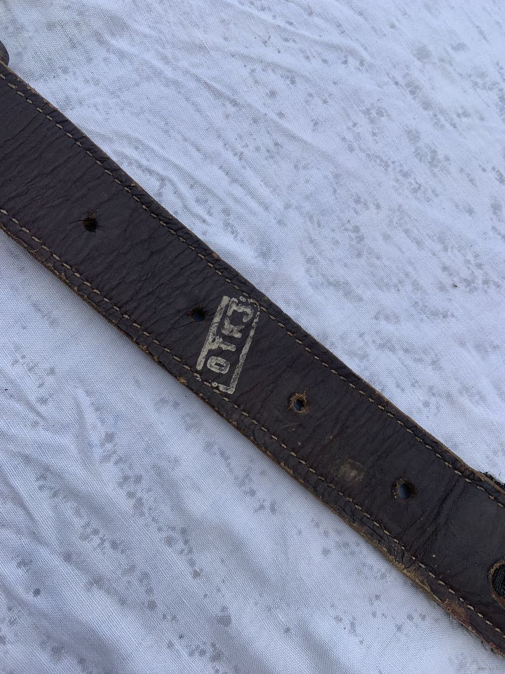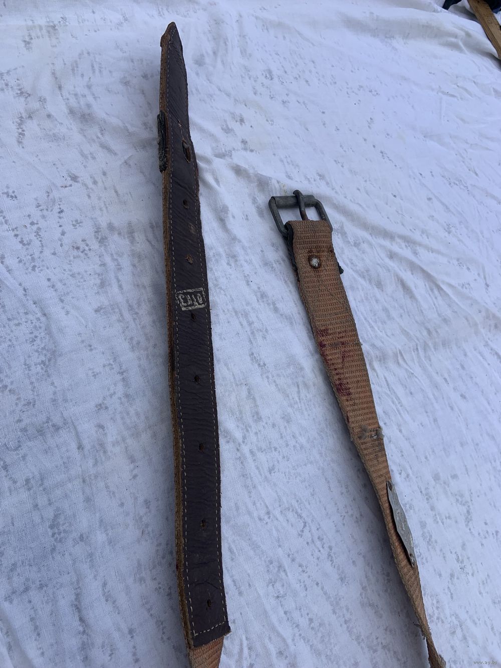 | длинна 130 см. На последнем фото показаны и 2 других-более ранних прочнейших специальных ремня из раннего СССР-выставлены по-отдельности. | |