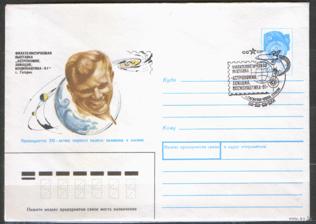 СПГ на ХМ конверте. 1991. Фил. выставка: астрономия, авиация, космонавтика.
