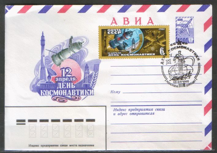 СПГ на ХМ конверте, франкированного маркой 5215 (СК). 1982. День космонавтики.