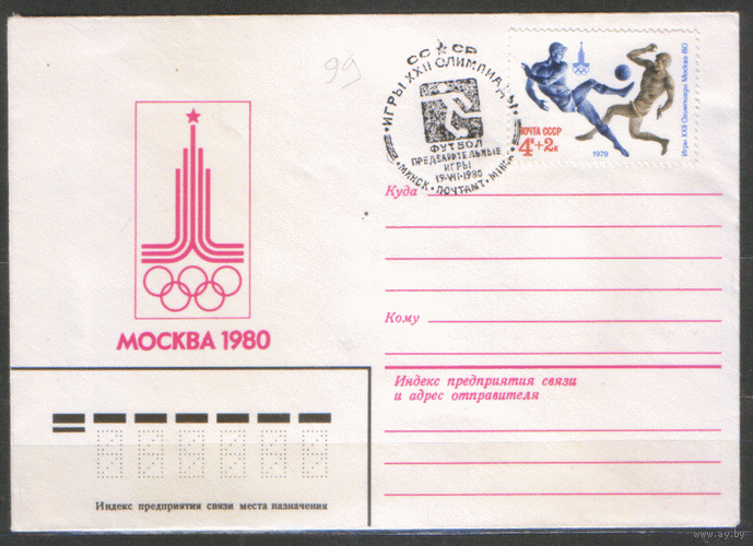 СПГ на ХНМ конверте. 1980. Франкировано маркой 4906 (СК). ОИ-80. Футбол. Предварительные игры.