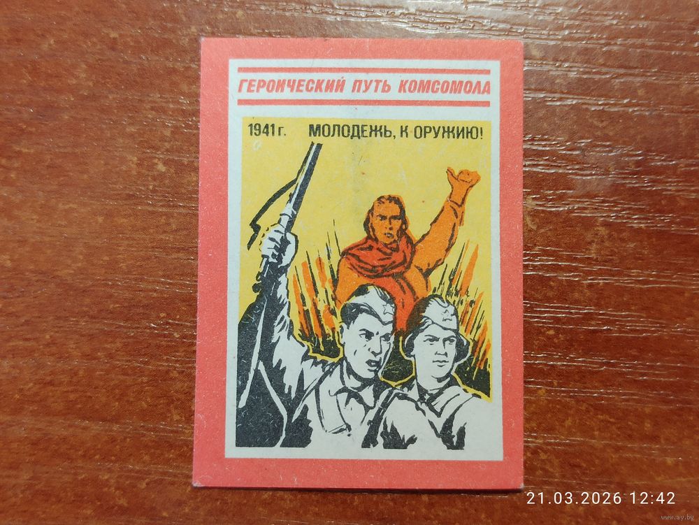 Спичечная этикетка 1941 Молодежь к оружию!