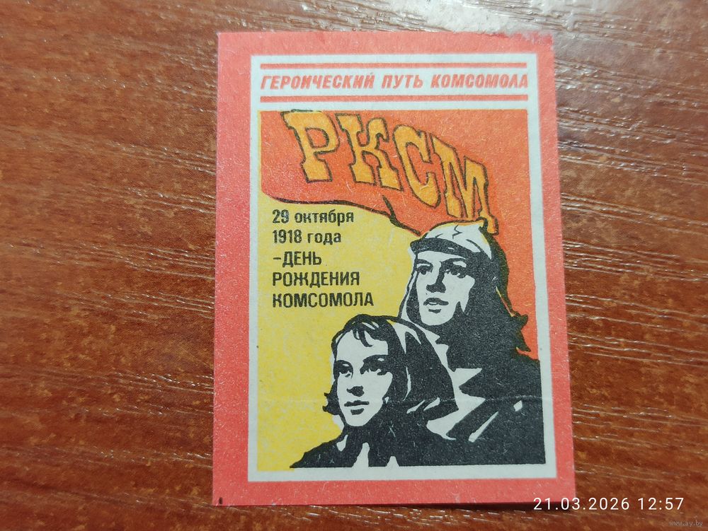 Спичечная этикетка 29 октября 1918 день рождения Комсомола