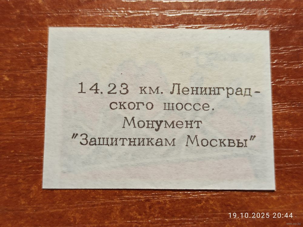 Спичечная этикетка Химки монумент Защитникам Москвы