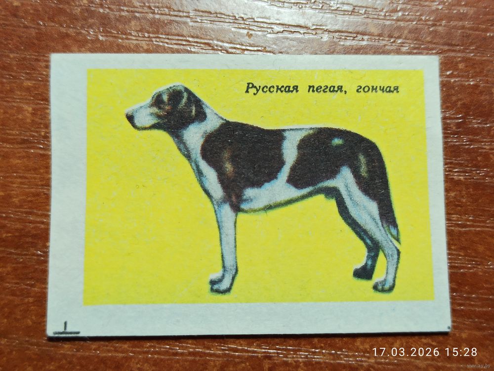 Спичечная этикетка Русская пегая, гончая