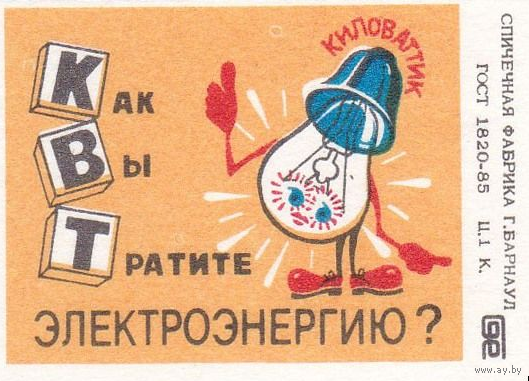 Спичечные этикетки ф.Барнаул. Как вы тратите электроэнергию? 1989 год