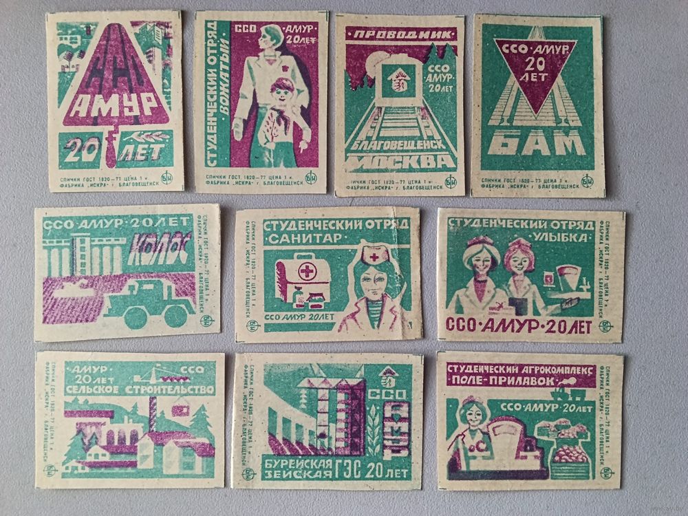 Спичечные этикетки ф.Искра.20 лет ССО "Амур"