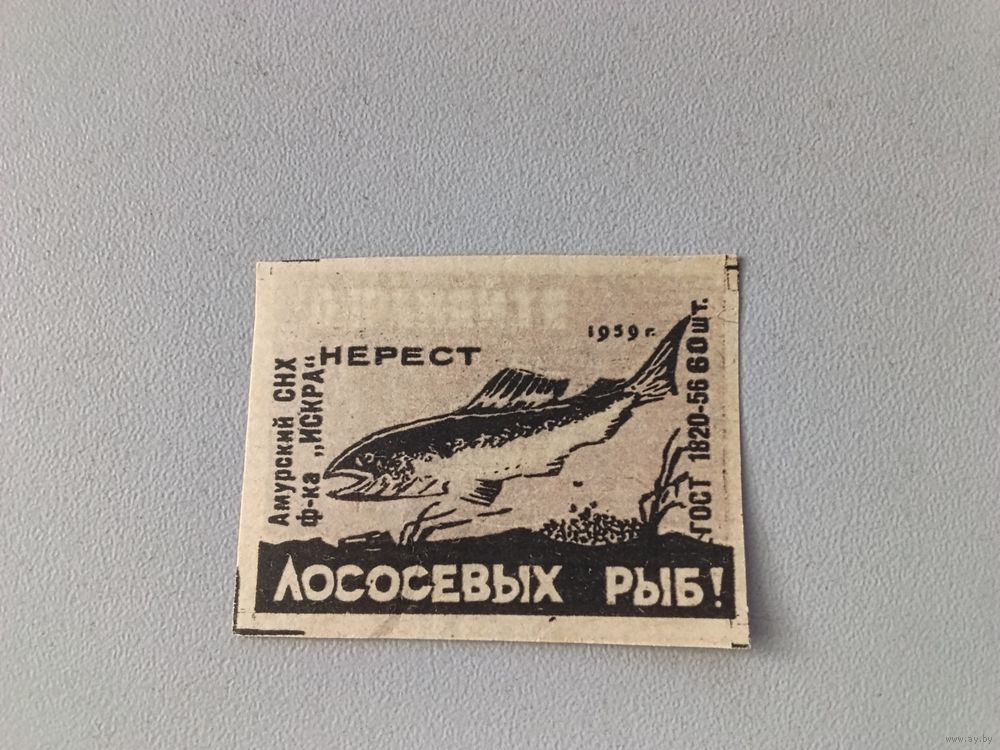 Спичечные этикетки ф.Искра. Охраняйте нерест лососёвых рыб