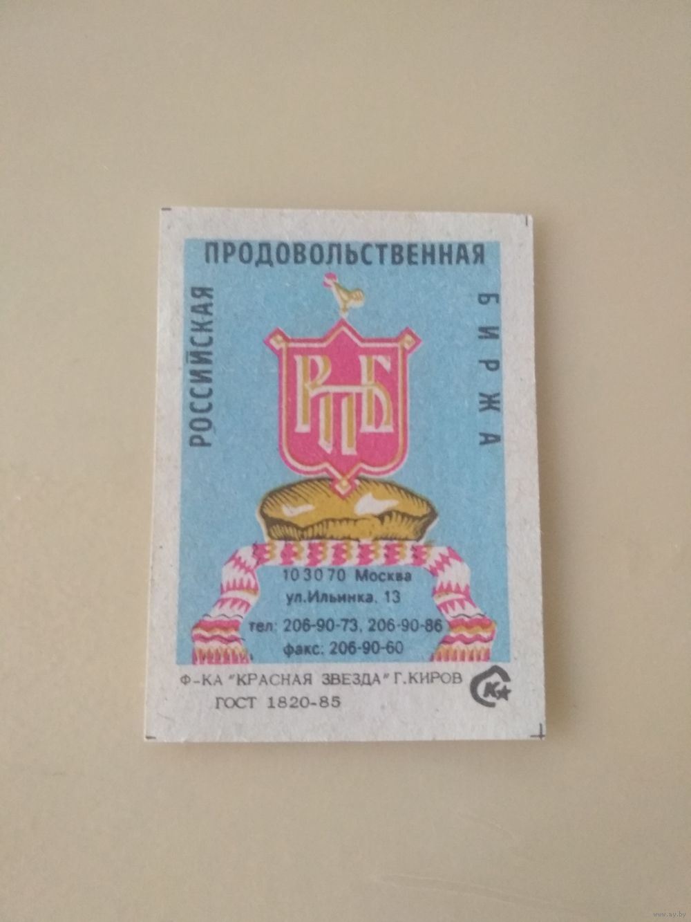Спичечные этикетки ф.Красная звезда. Российская продовольственная биржа. 1992 год