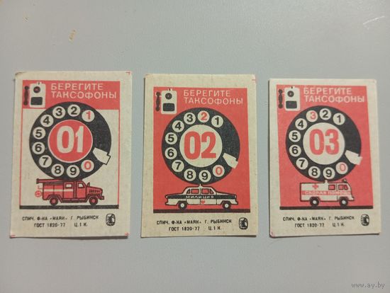 Спичечные этикетки ф.Маяк. Берегите таксофоны. 1981 год