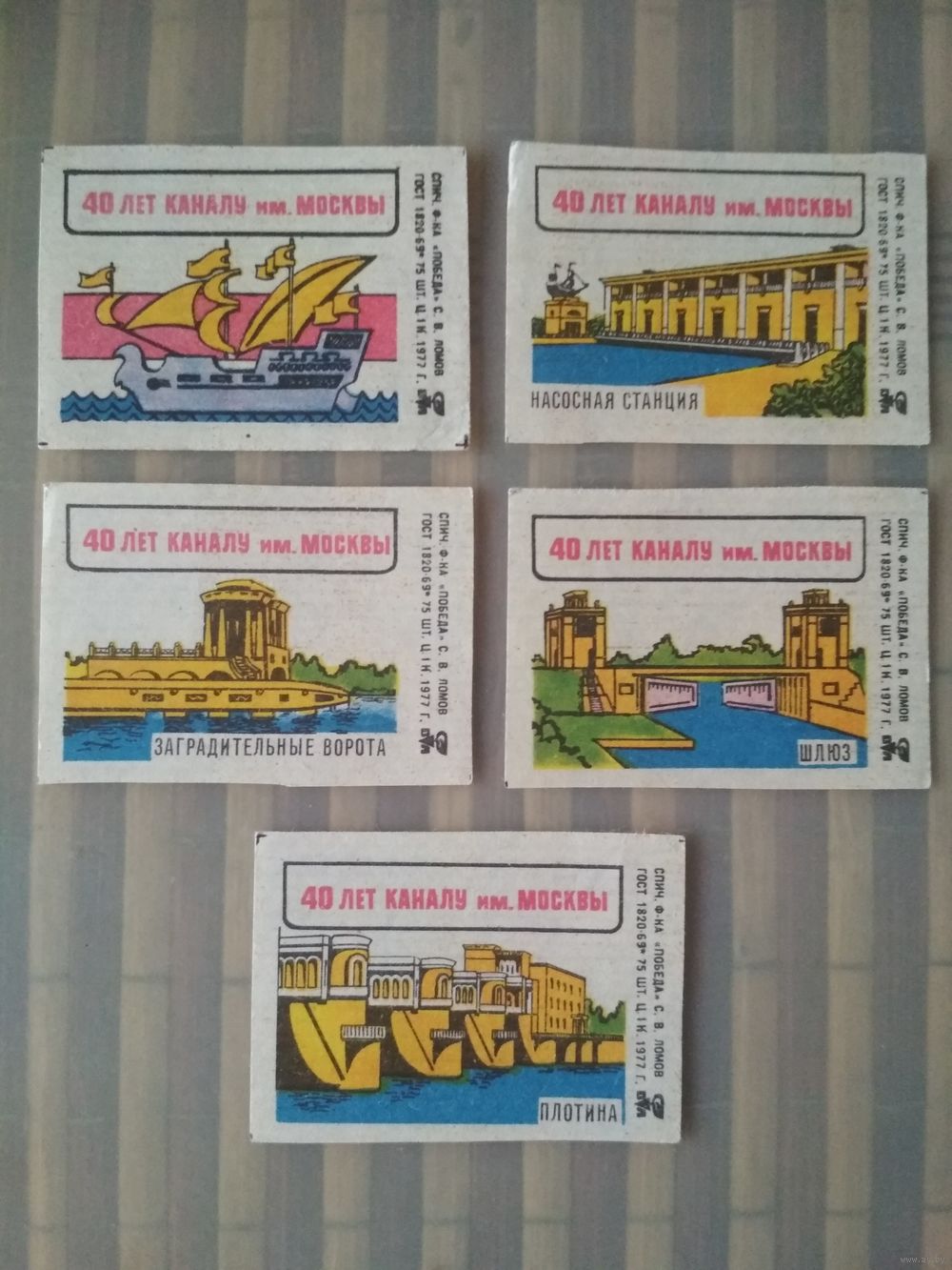 Спичечные этикетки ф.Победа. 40 лет каналу им. Москвы. 1977 год