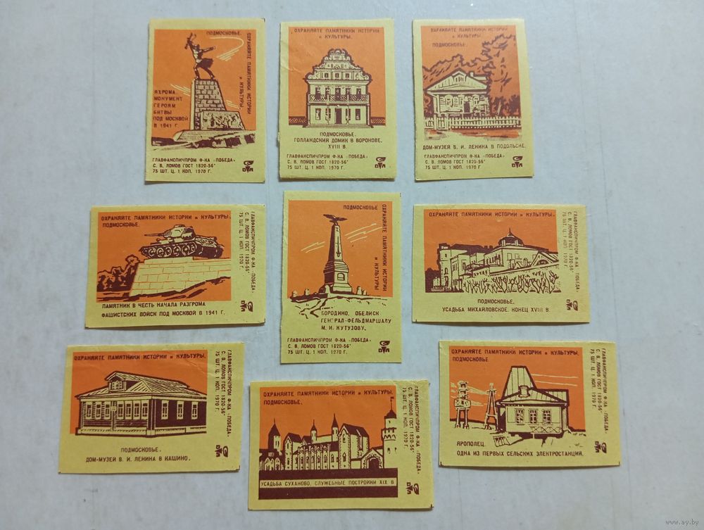 Спичечные этикетки ф.Победа. Охраняйте памятники истории и культуры. 1970 год