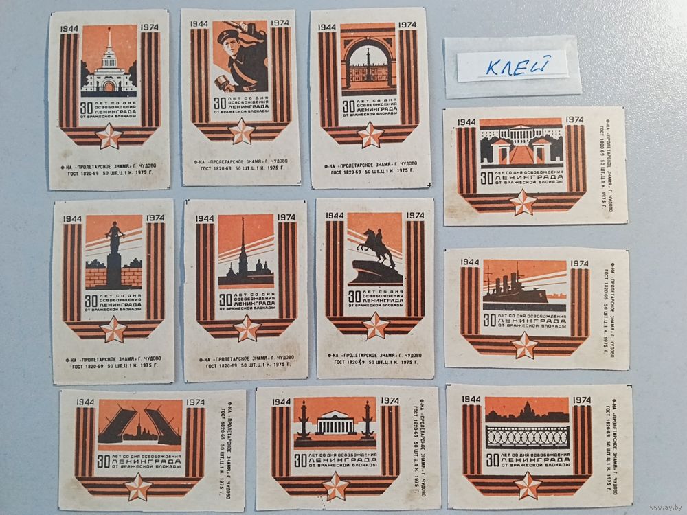 Спичечные этикетки ф.Пролетарское знамя. 30 лет со дня освобождения Ленинграда от вражеской блокады.1974 год