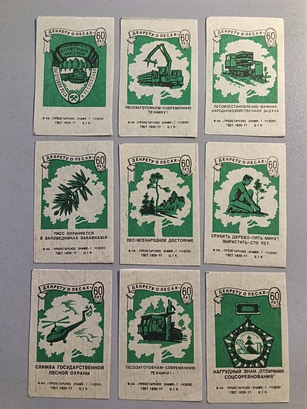 Спичечные этикетки ф.Пролетарское знамя. 60 лет декрету о лесах