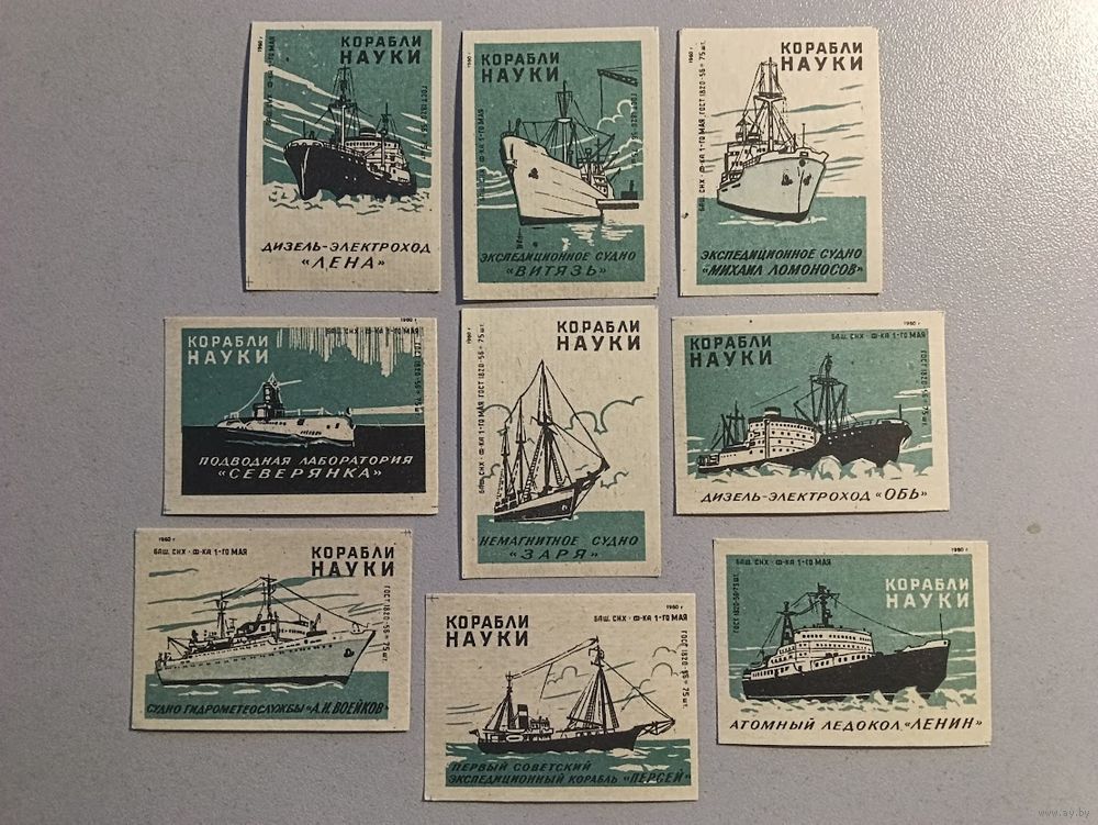 Спичечные этикетки Комбинат "Красный Якорь" (ф-ка "Белка"). Корабли науки. ГОСТ 1820-56.1959 год