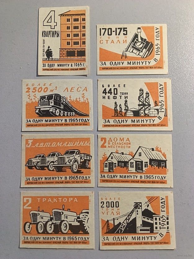 Спичечные этикетки Комбинат "Красный Якорь" (ф-ка "Белка") За одну минуту в 1965 году