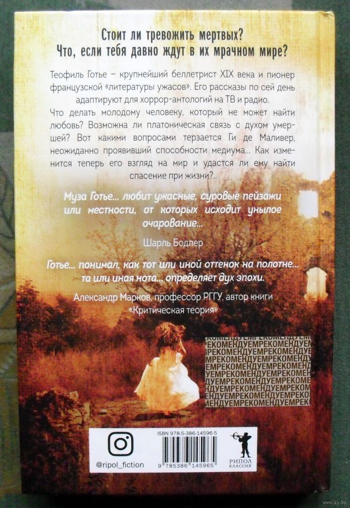 Теофиль Готье - крупнейший беллетрист XIX века и пионер французской "литературы ужасов". Его рассказы и по сей день адаптируют для хоррор-антологий на радио и телевидении. Что делать молодому человеку, который не может найти любовь? Возможна ли платоническая связь с духом умершей? Вот какими вопросами терзается Ги де Маливер, неожиданно для себя сыгравший ключевую роль на модном спиритическом сеансе… Как изменится теперь его взгляд на мир и найдет ли он спасение при жизни?..