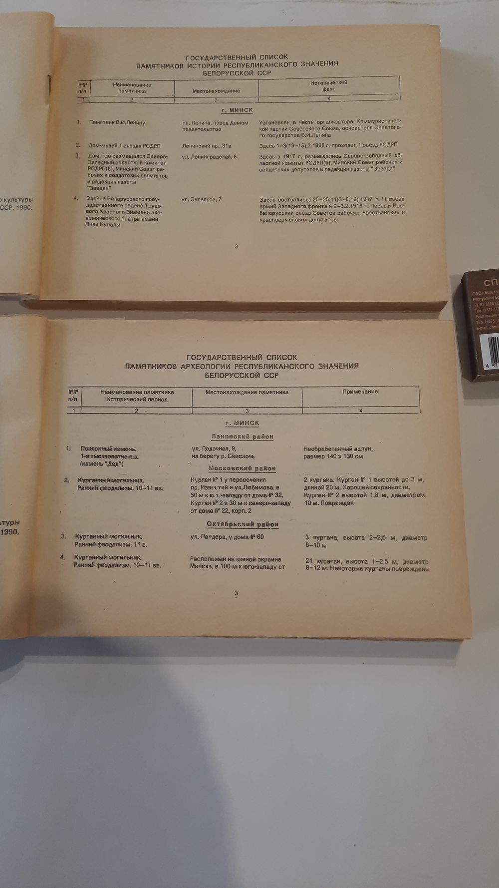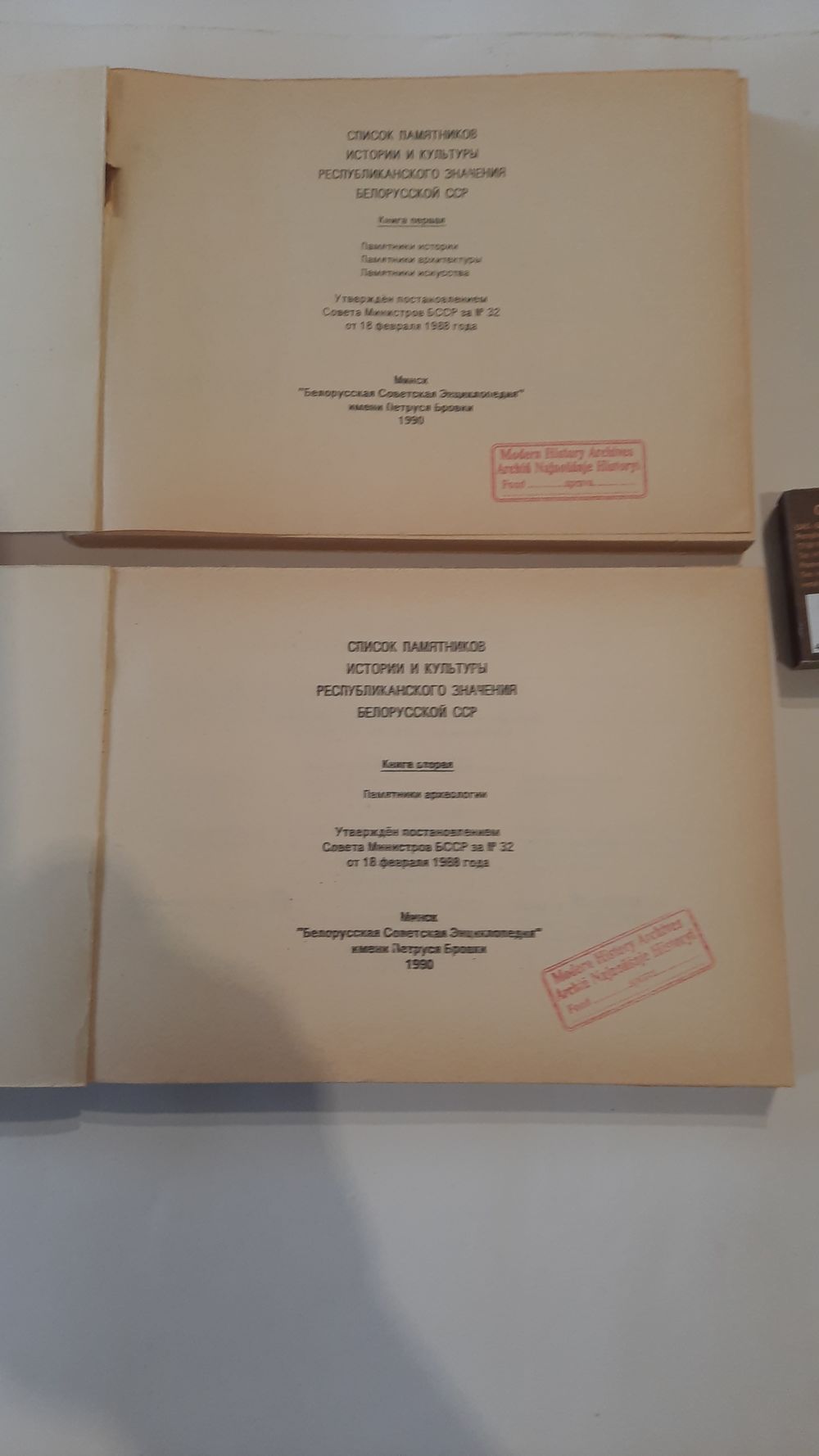 Список памятников истории и культуры республиканского значения в 2-х книгах, Минск 1990г.