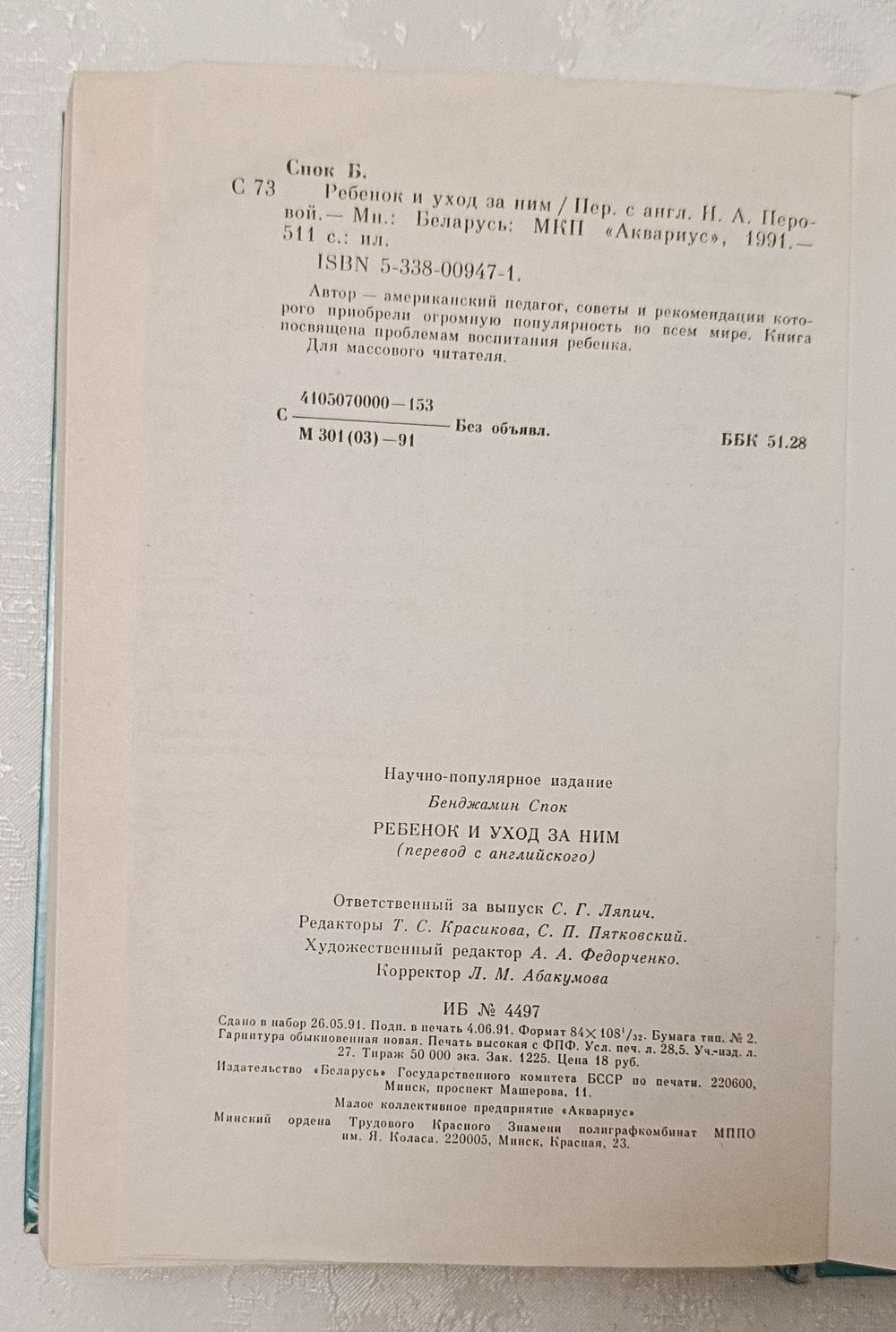 Спок Бенджамин. Ребенок и уход за ним. Мн.: Беларусь: МКП «Аквариус», 1991.-511 с.: ил., твердый переплет, обычный формат.