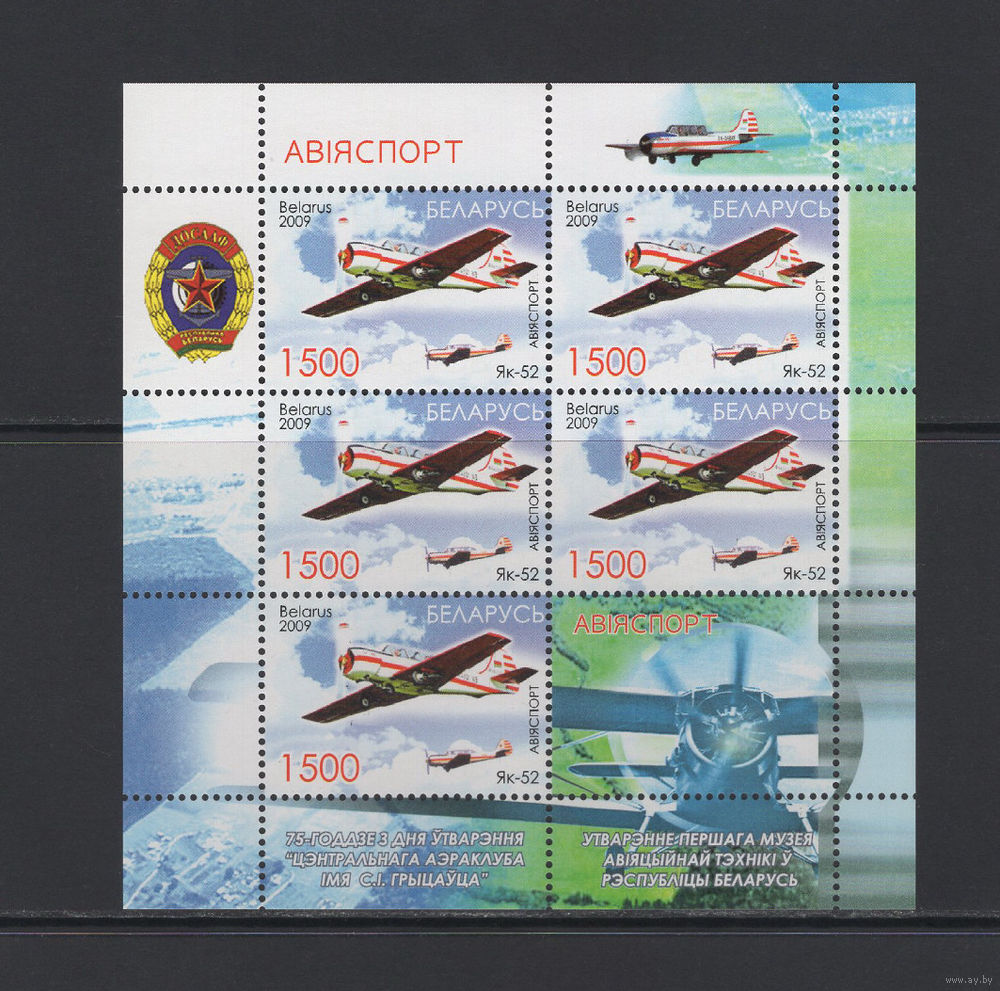 Спорт Беларусь 2009 Малый лист "Авиаспорт"