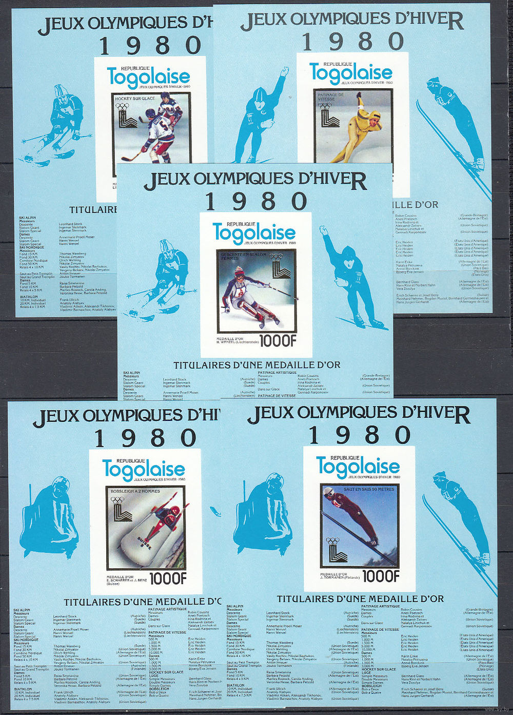 Спорт. Олимпийские игры. Того. 1980. 5 блоков б/з. Michel N бл169-173 (- е)