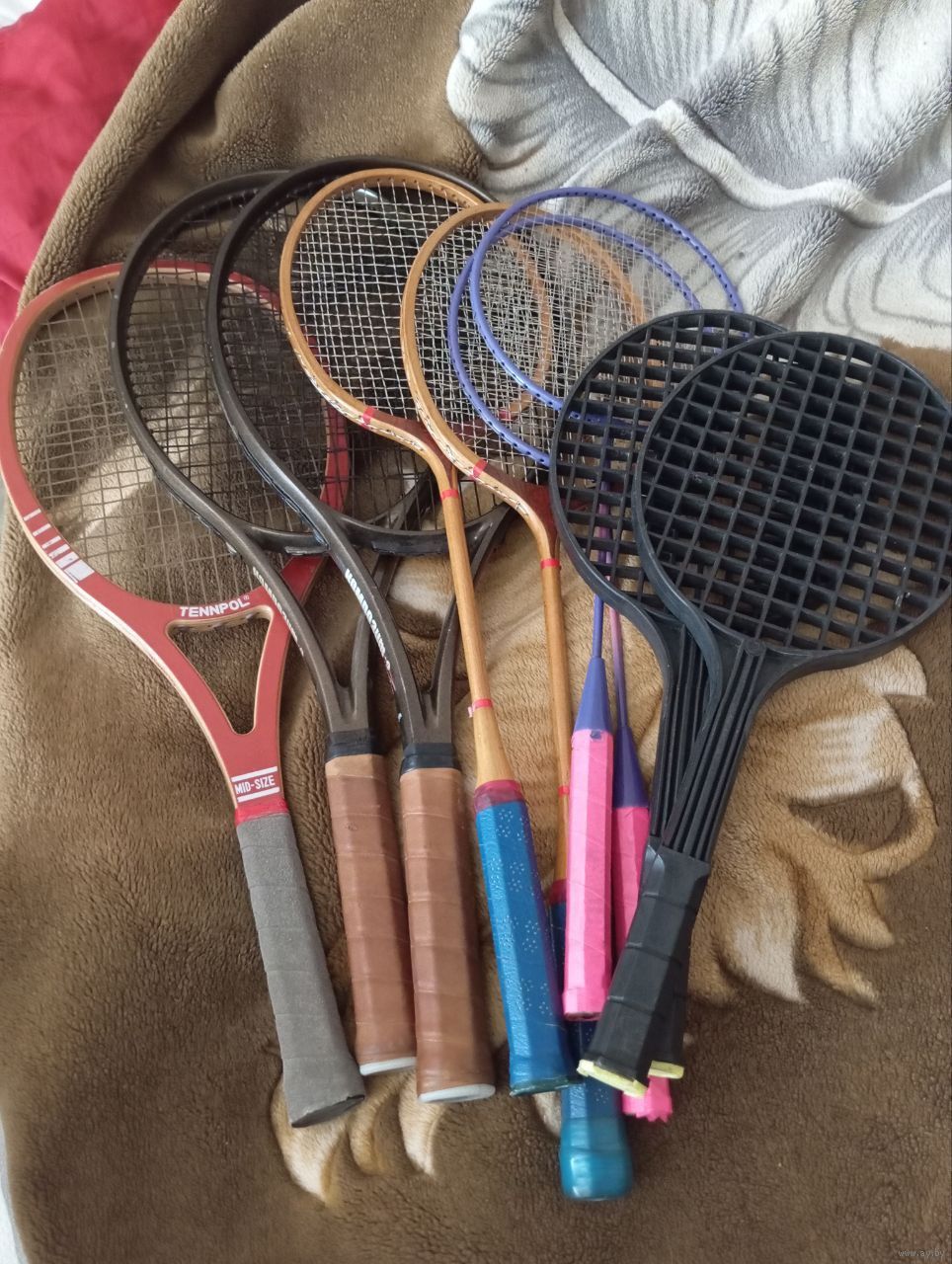 8 бадминтонных ракеток (1 с дефектом, но рабочая) - деревянные ракетки проданы (-15 руб от общей стоимости лота)